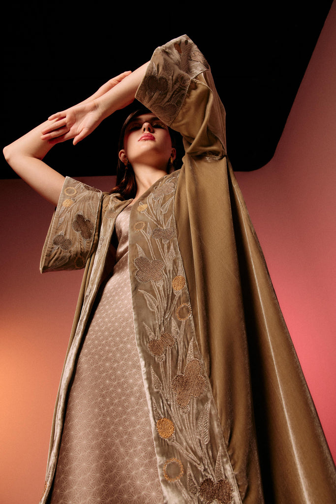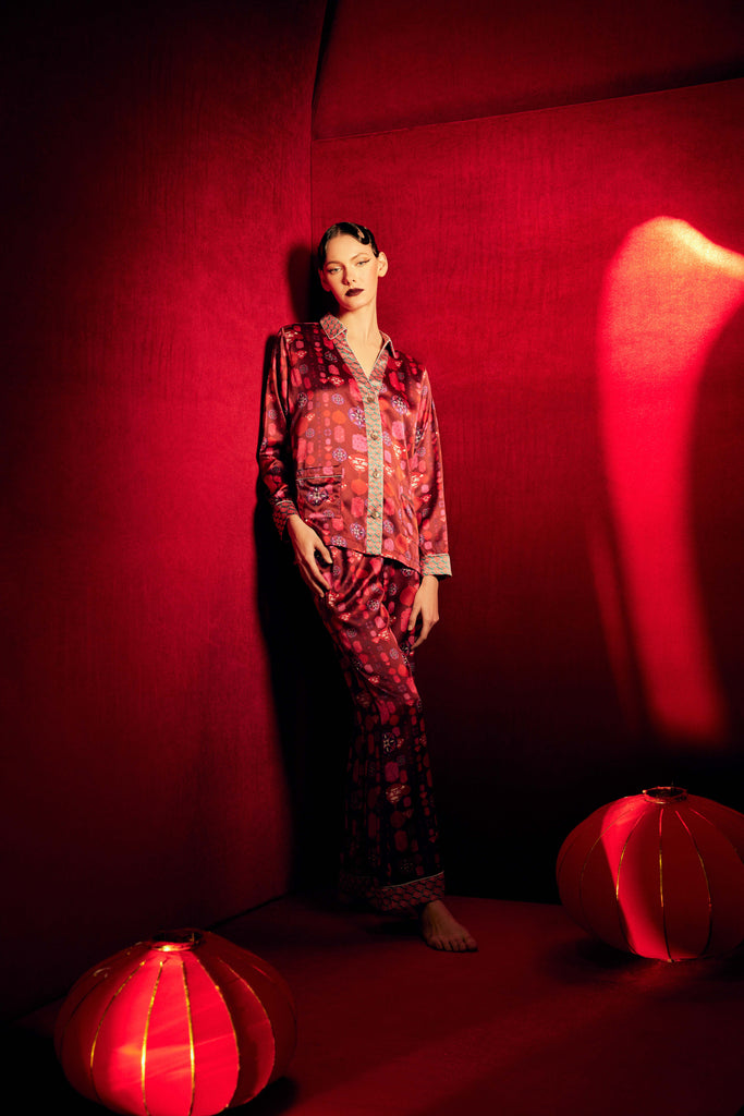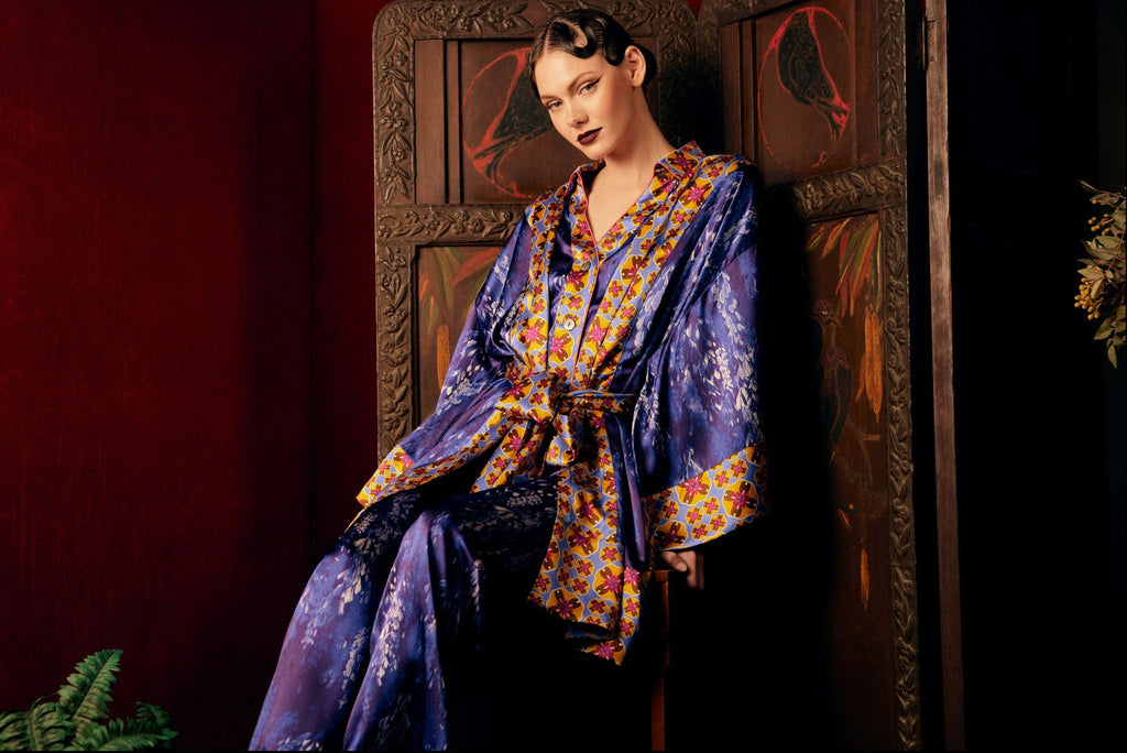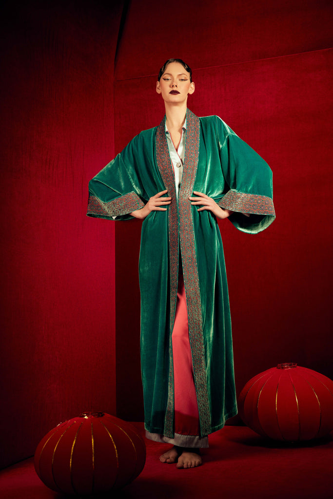 Celebrate the season with our Limited-Edition Fuji Collection, where luxurious silk and velvet meet reimagined Japanese motifs in serene blues, mint, royal purples and rich burgundies. Bold embroidered pieces and striking red accents bring timeless elegance and festive charm. Chic, cosy and undeniably luxurious, this capsule is perfect for intimate celebrations or statement-making soirées.