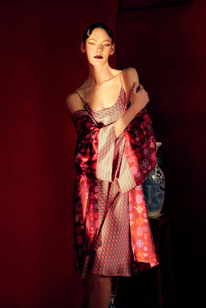 Edo Slip Dress Kumo Red Silk