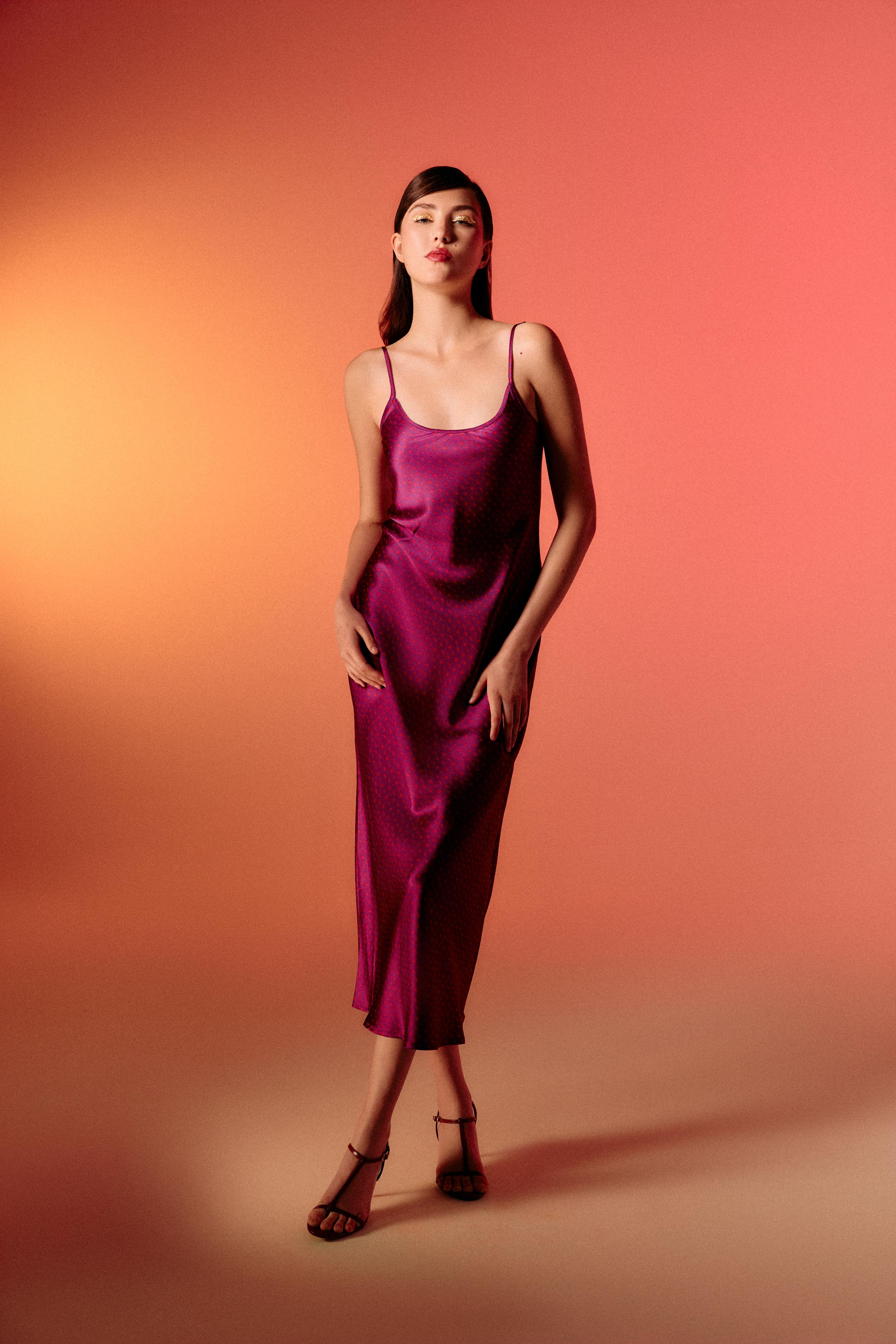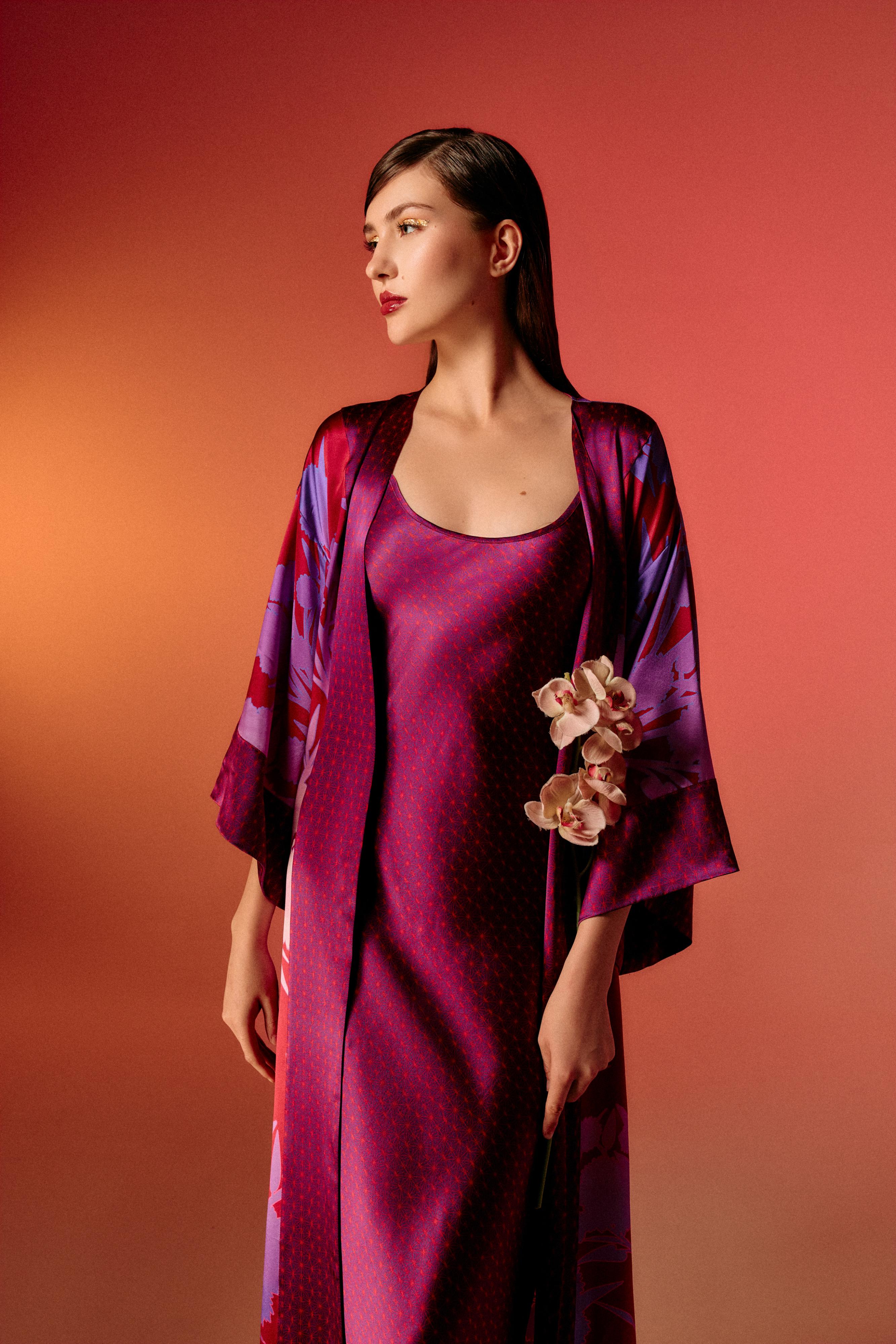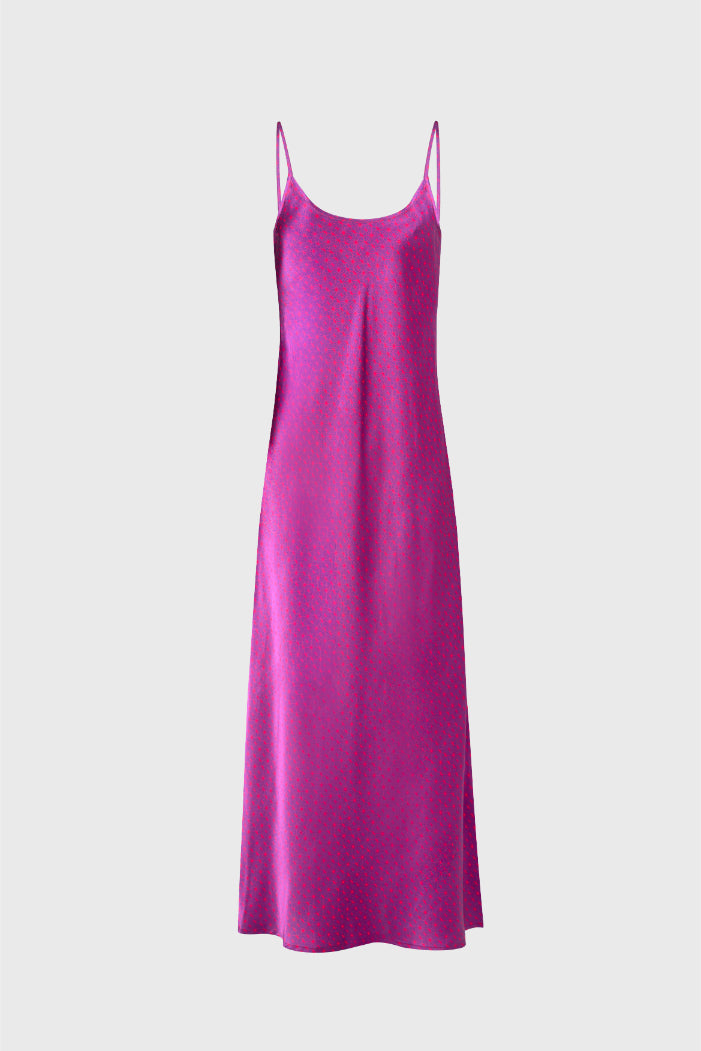 Edo Long Slip Dress Hoshi Raspberry Silk