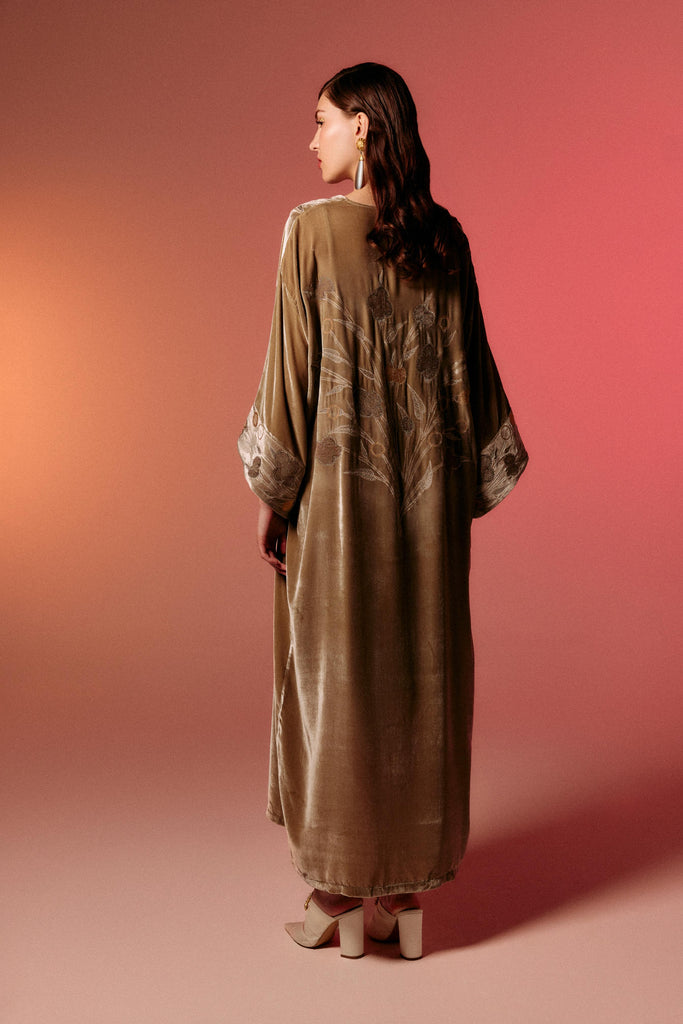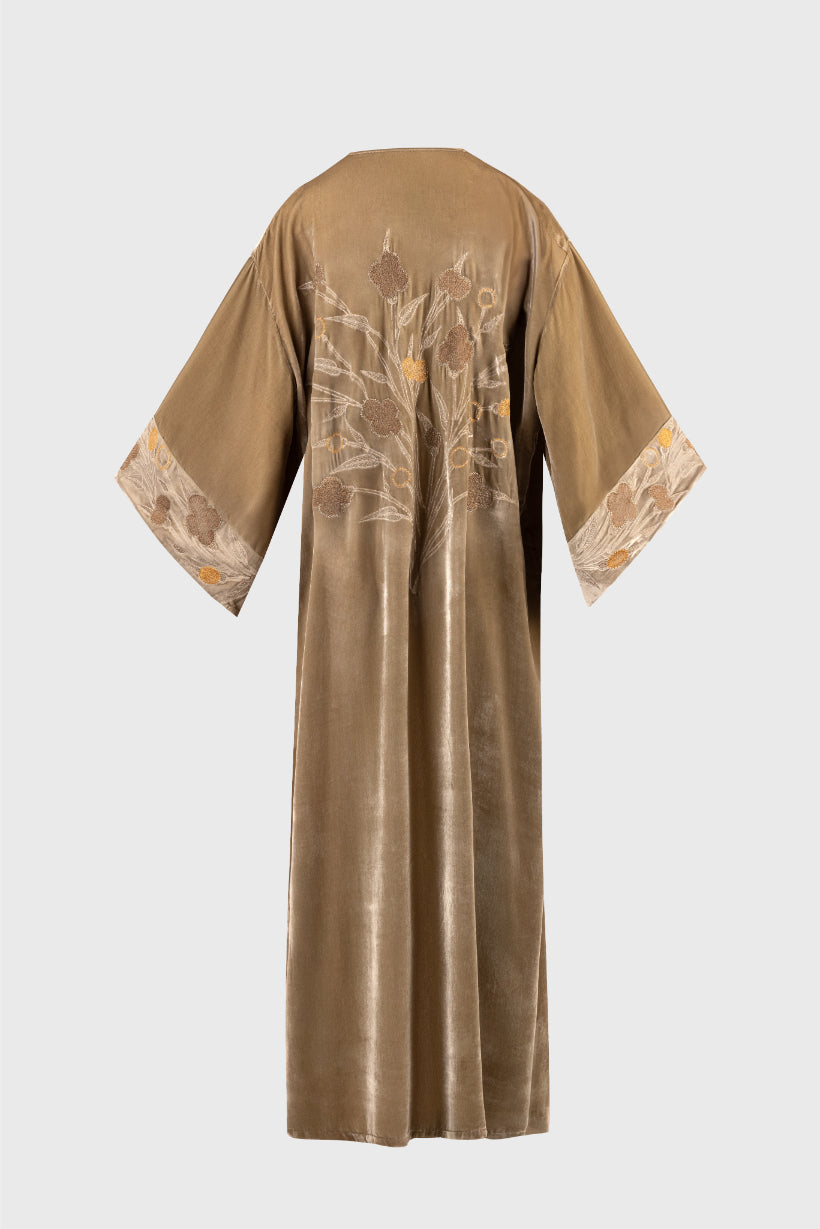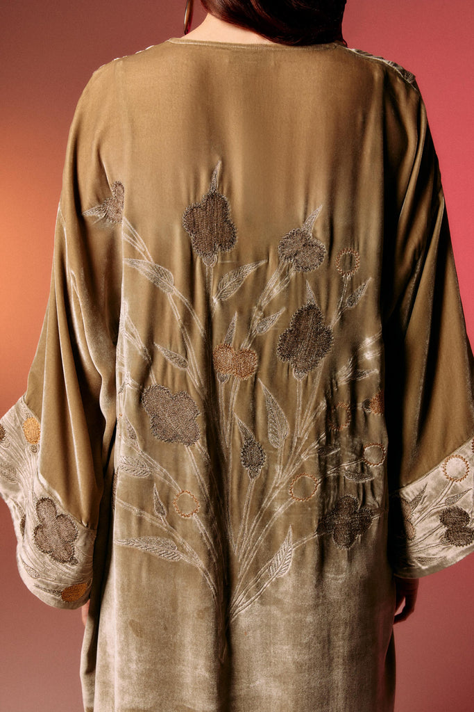 Embroidered Kobe Kimono Mushroom Velvet