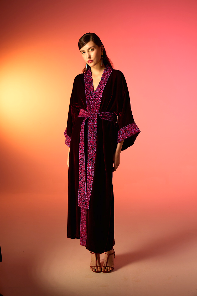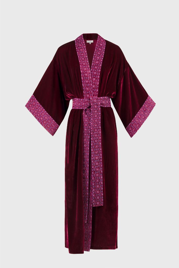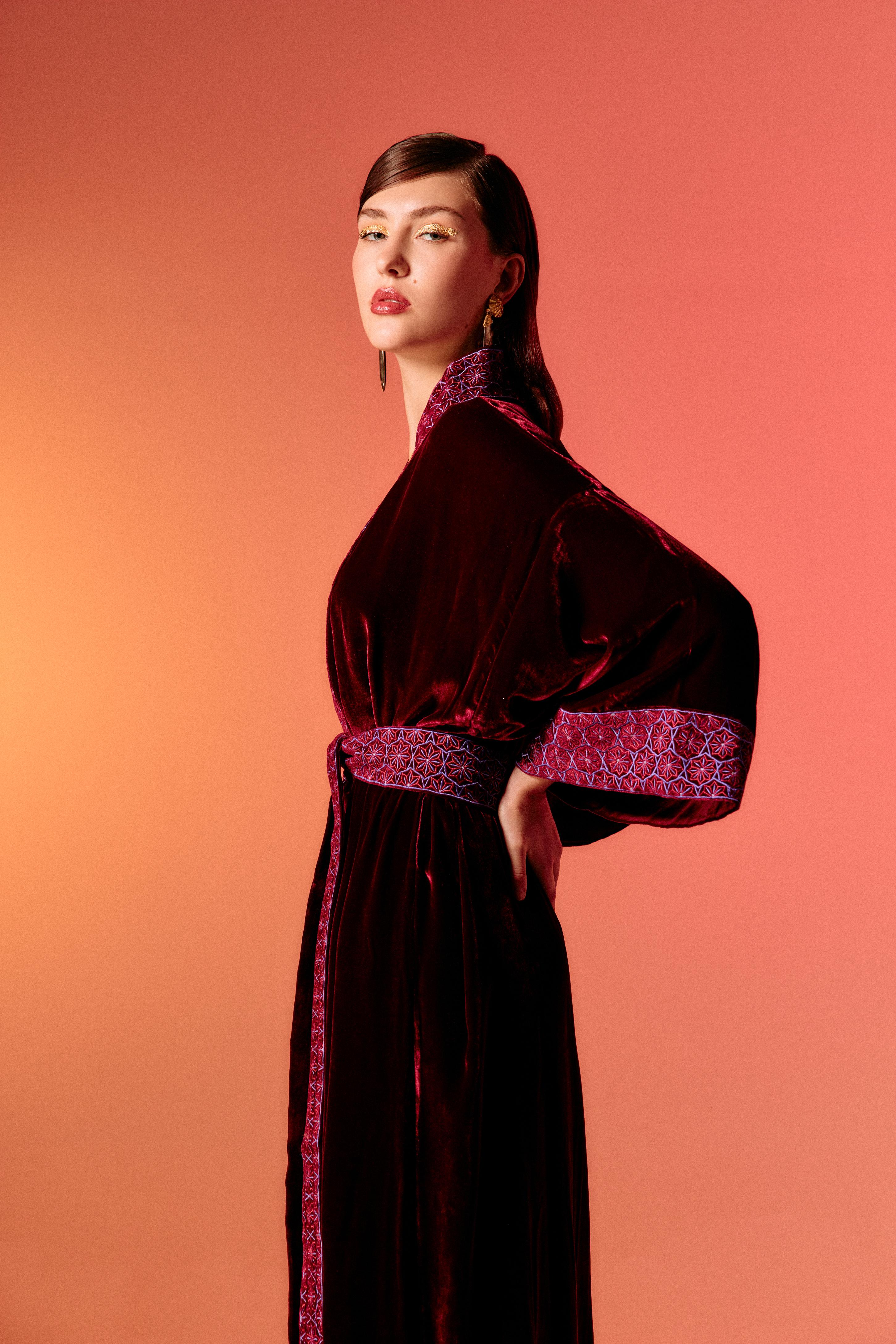 Embroidered Nikko Long Kimono Sultan Red Velvet