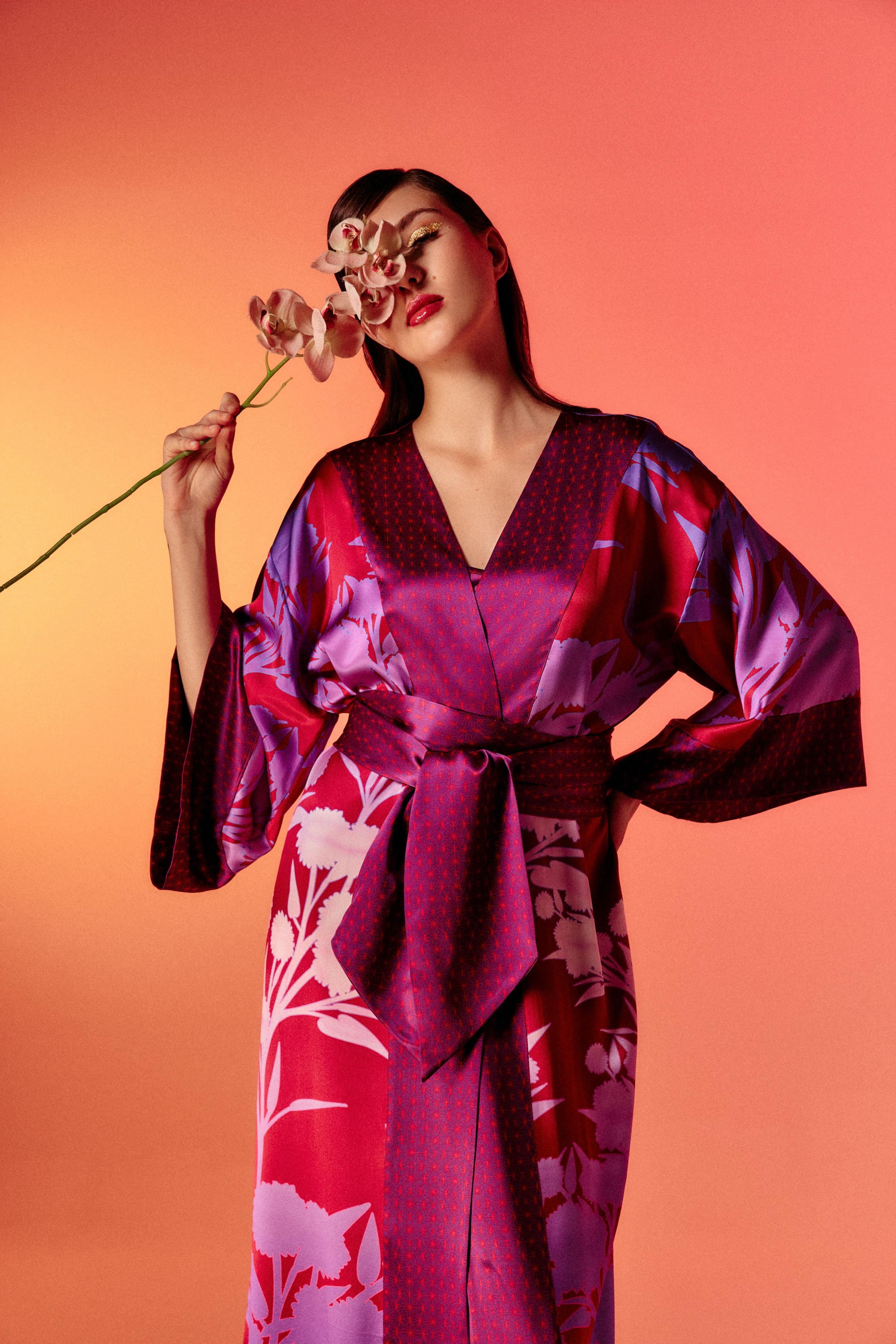 Kobe Kimono Yuri Raspberry Silk