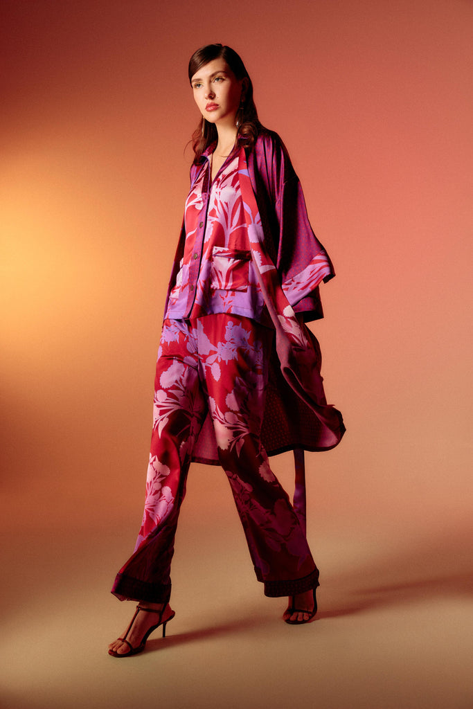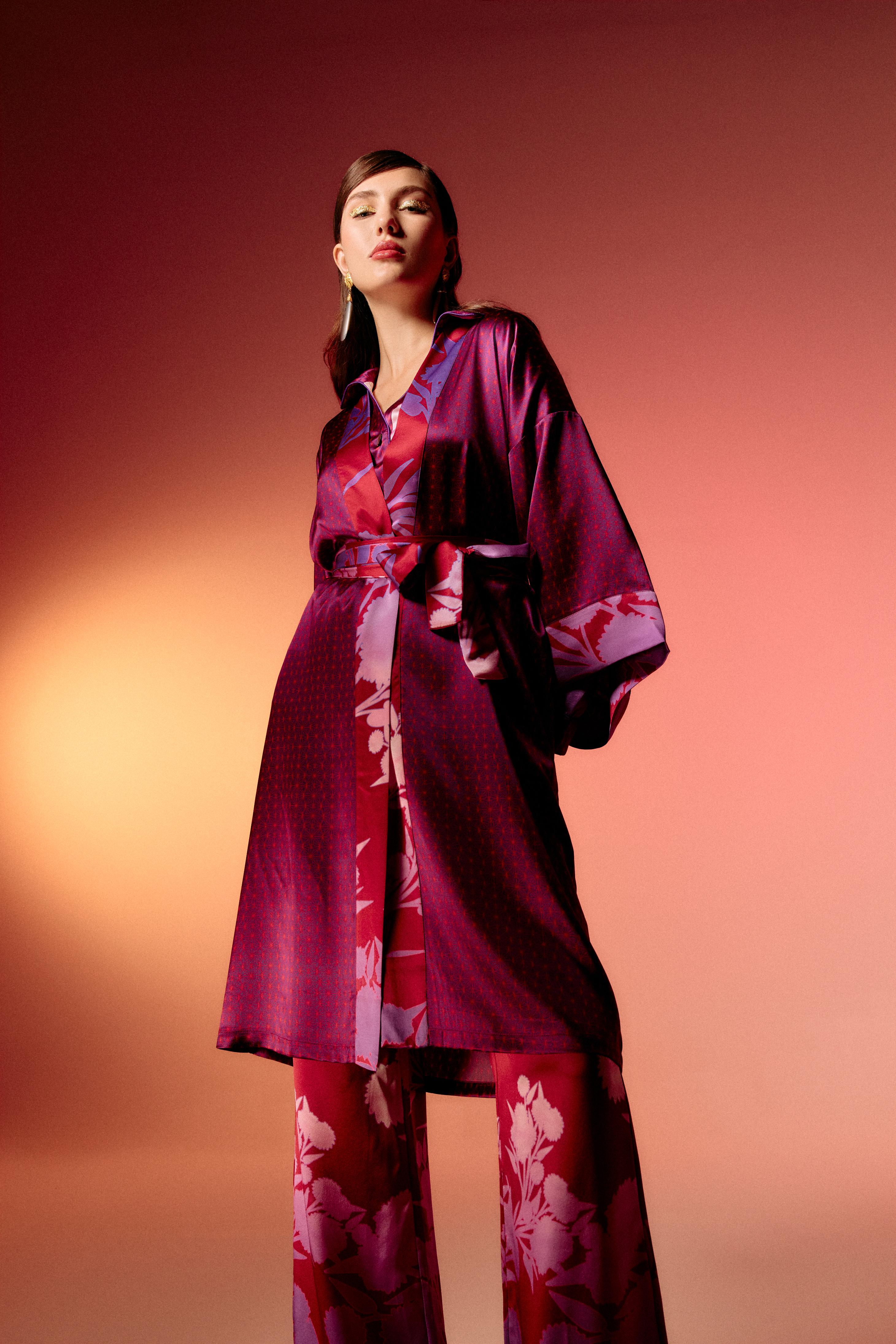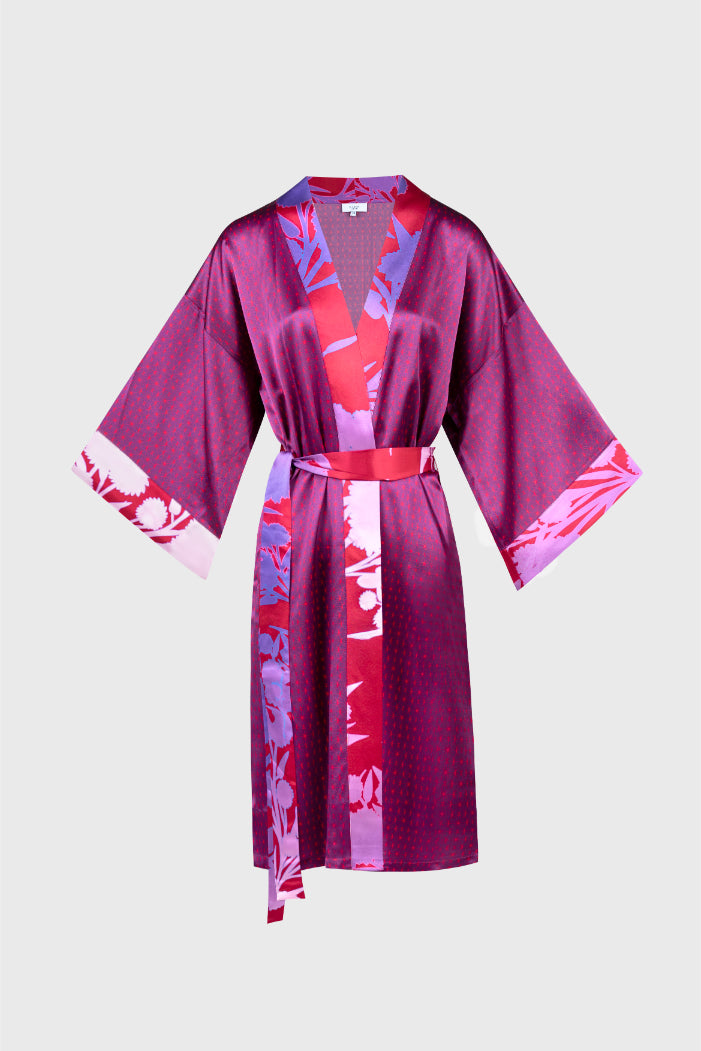 The short Nikko Kimono is crafted from soft, breathable 100% silk and features a striking print with a flattering, slimmer cut. A sleek detachable belt lets you tailor the fit to your mood, from relaxed to cinched. Perfect for leisurely mornings or effortlessly transitioning into the evening, it layers beautifully over our Edo Slip Dress or shines equally chic on its own.