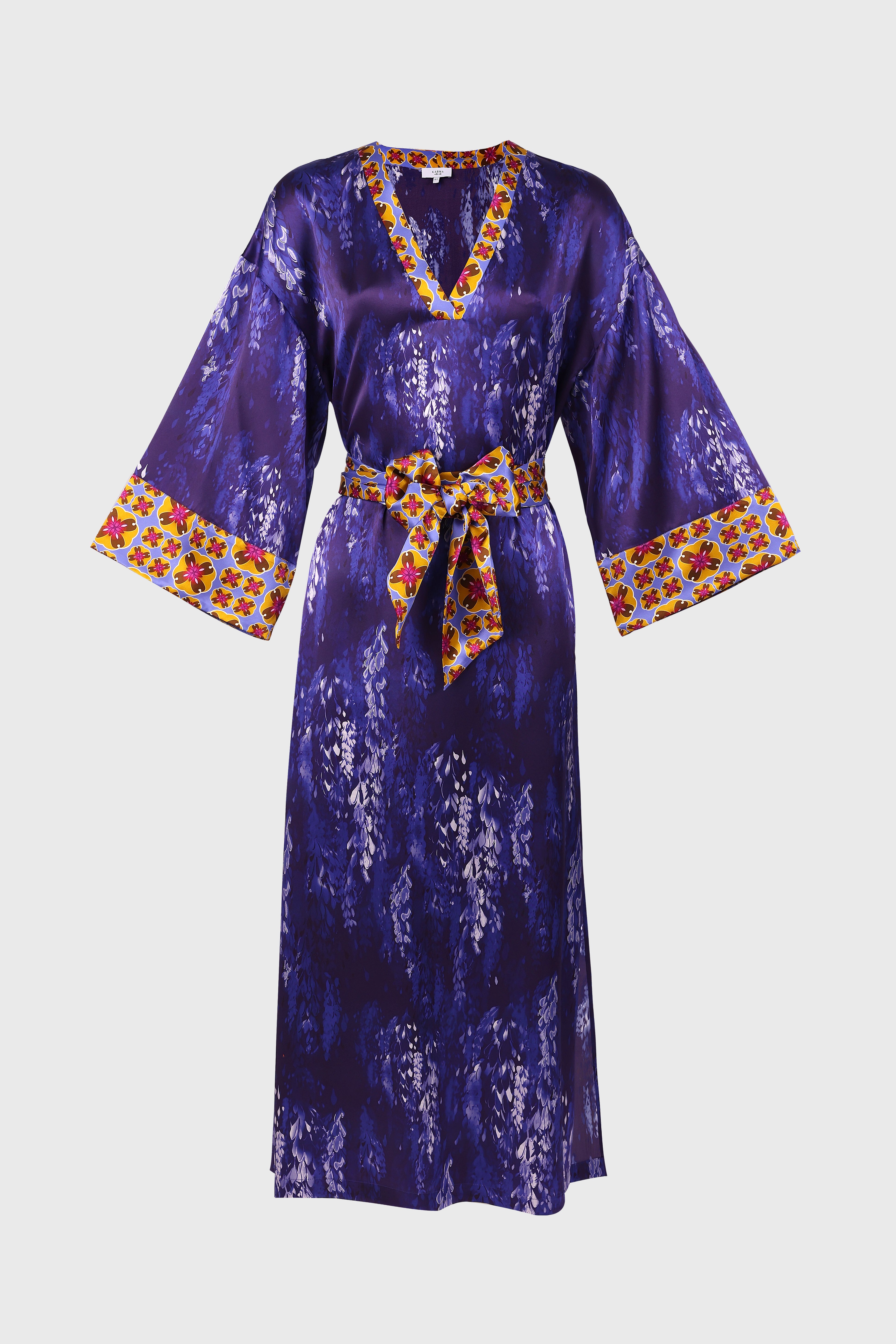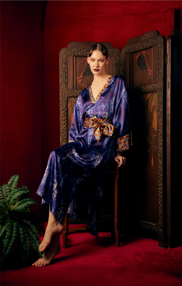 The Kyoto Kaftan is crafted from soft, breathable 100% silk, falling fluidly with a natural elegance. The V-neckline and large detachable belt allow you to style it your way, loose and effortless for comfort, or cinched at the waist for a more defined silhouette. A true statement piece, it moves seamlessly from home to evening, from quiet moments of ease to nights out, embodying chic versatility with every wear.