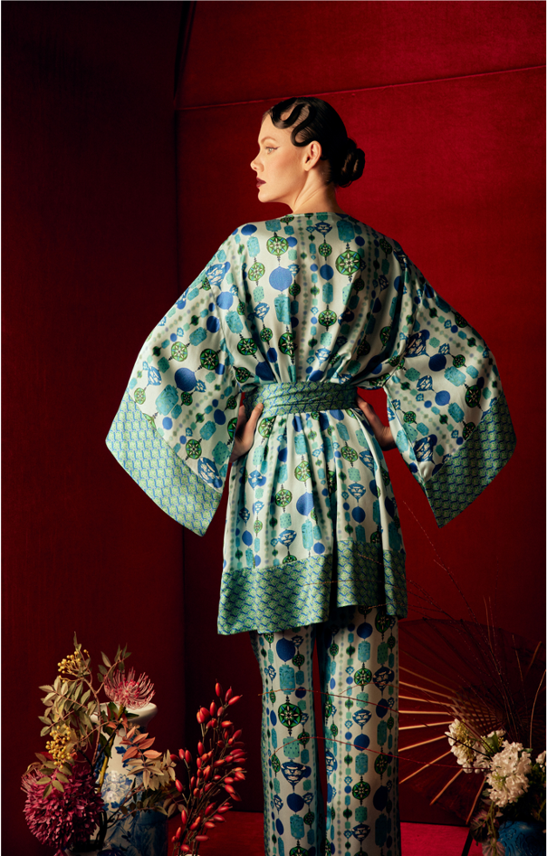 The short Osaka Kimono is cut from soft, breathable 100% silk and defined by a gorgeous print. The detachable belt allows you to tailor the fit to your mood, making it as relaxed or as cinched as you like. Ideal for easy mornings or stepping seamlessly into the evening, it layers beautifully over our Edo Slip Dress yet looks equally chic worn on its own.