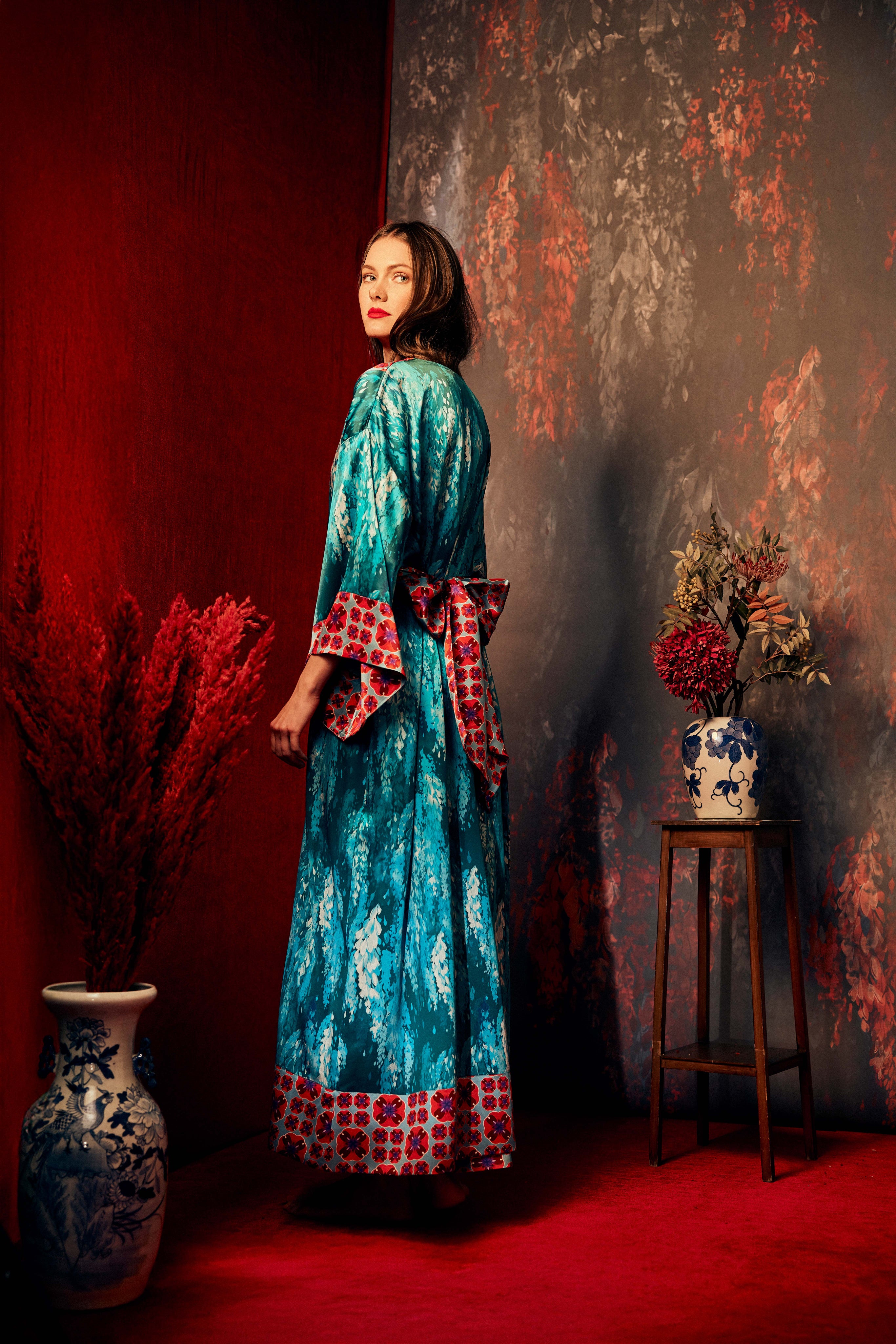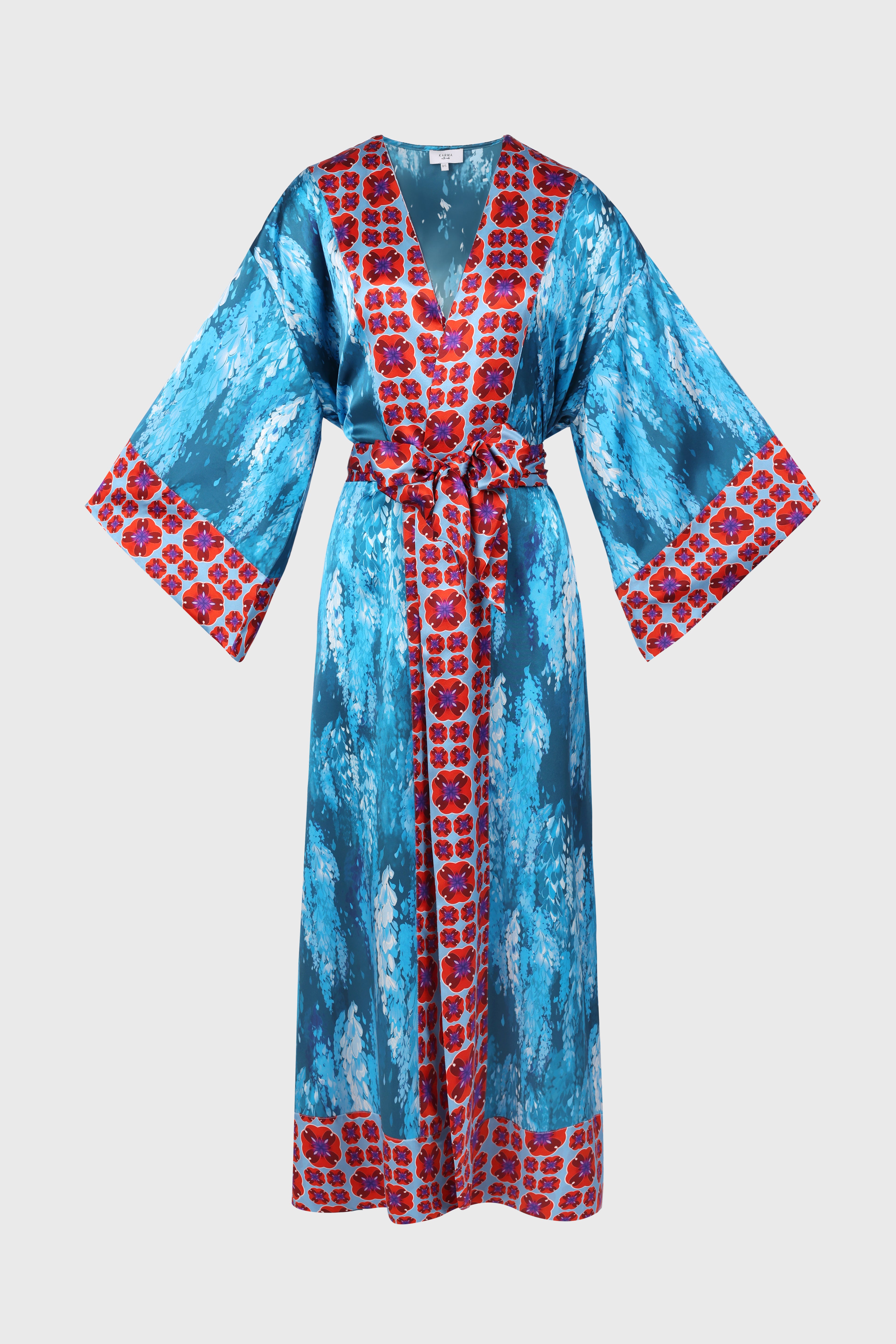 The long Kobe Kimono is crafted from soft 100% silk and adorned with a striking print that makes an effortless statement. Designed with a large detachable belt for a personalised fit, it moves with ease from relaxed mornings to elegant evenings. Wear it as a chic layer over our Edo Slip Dress, or style it on its own for an effortlessly refined look.