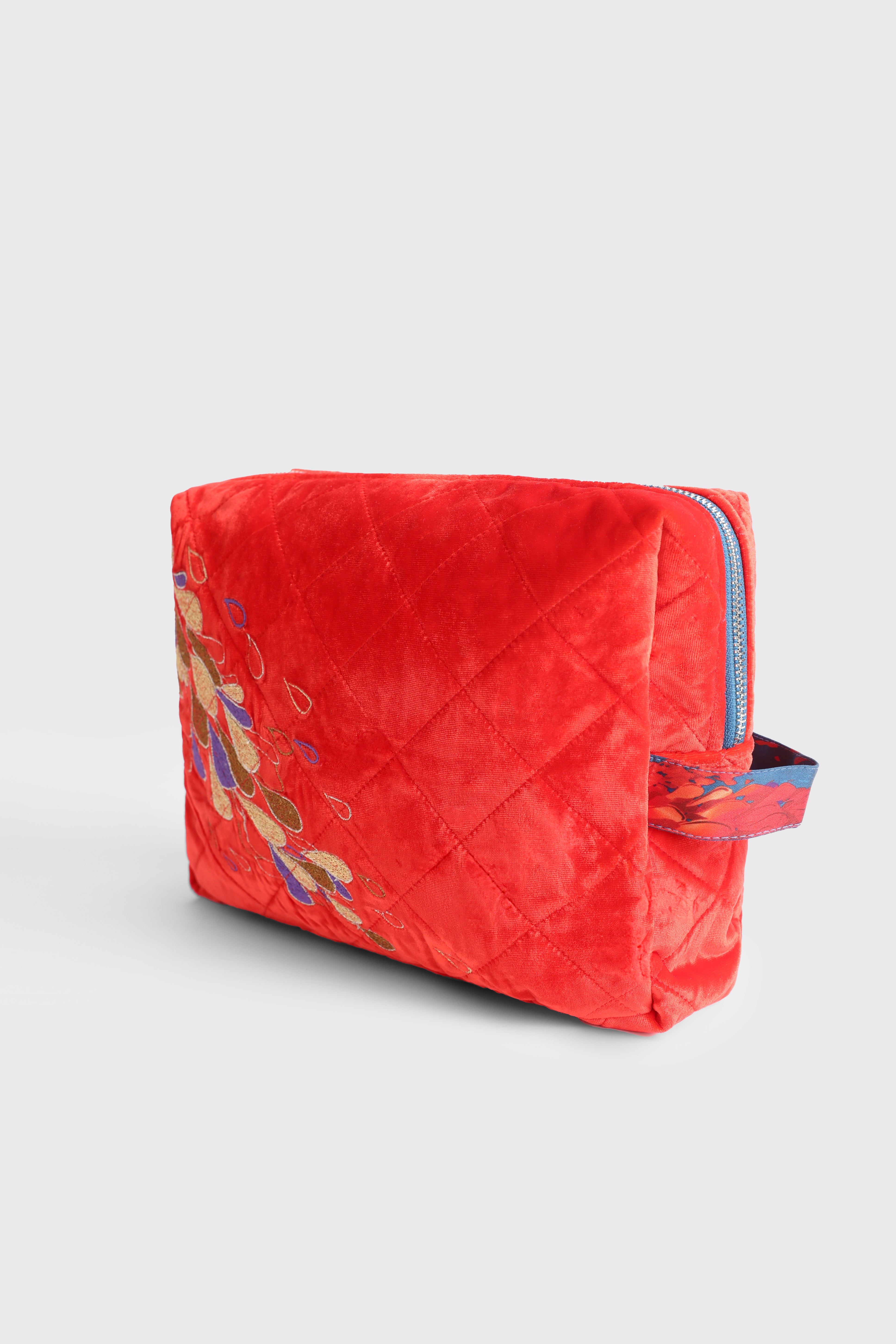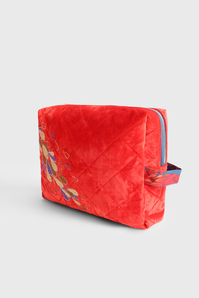 Spacious yet refined, the big pouch is crafted from sumptuous velvet with exquisite embroidery and a contrasting interior pattern for a discreet touch of charm. Lightly padded to protect and hold its shape, it combines beauty with practicality. Ideal for travel or home, it keeps your make-up, toiletries, or daily essentials elegantly organised, adding a whisper of luxury to every occasion.