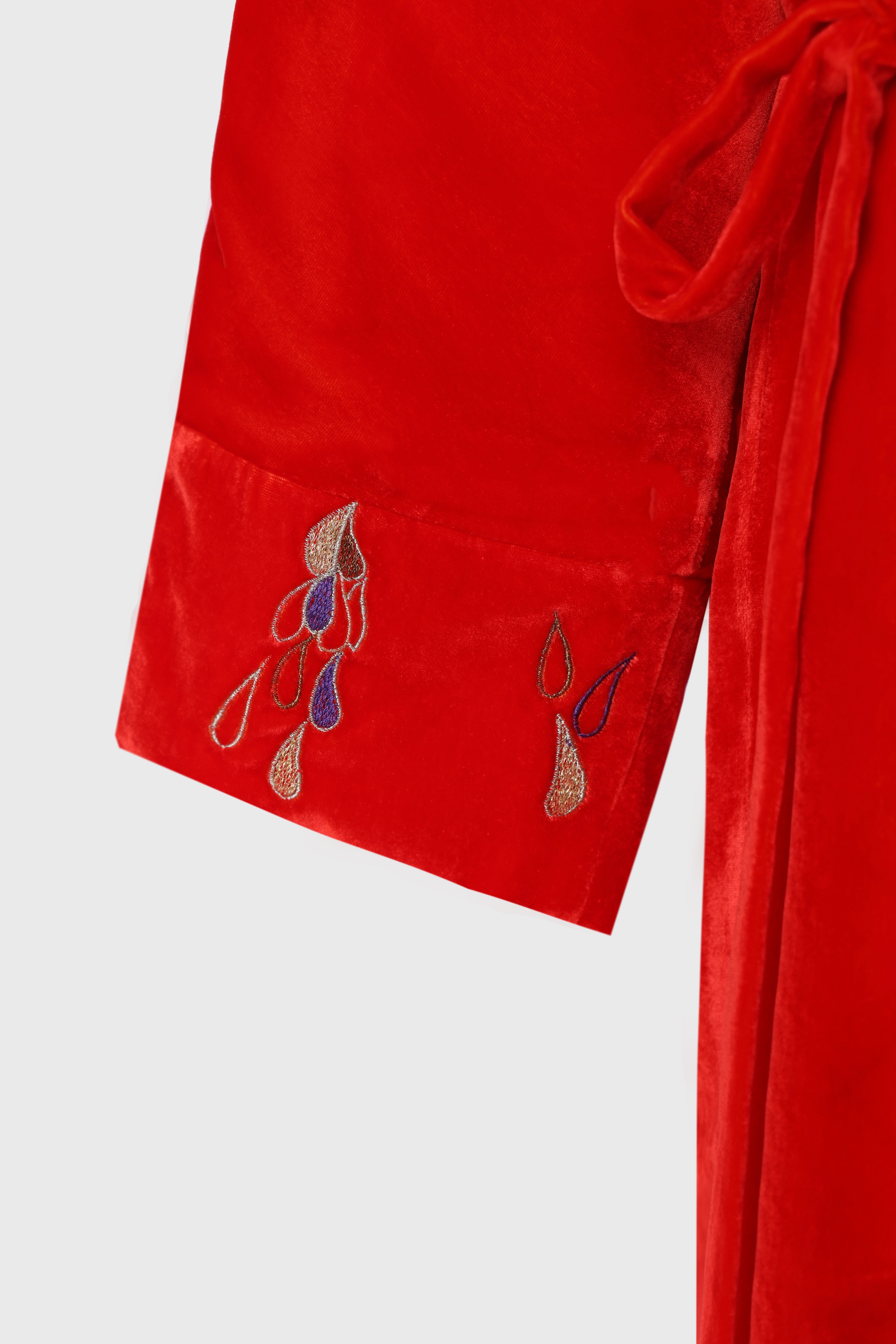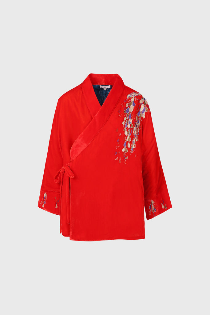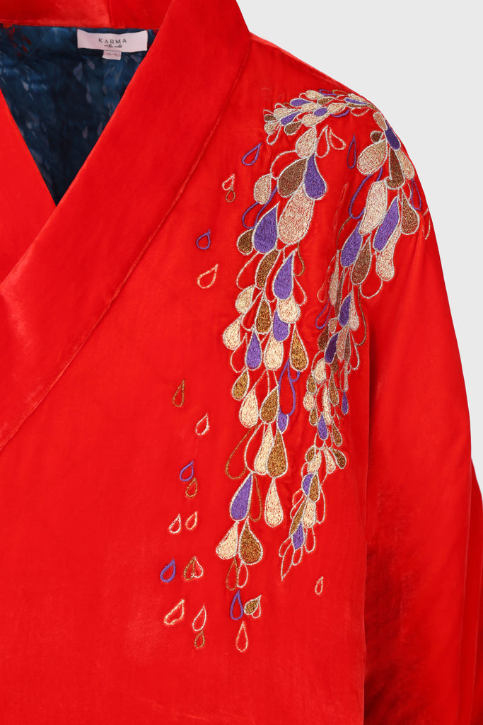 Embroidered Hanten Jacket Red Velvet