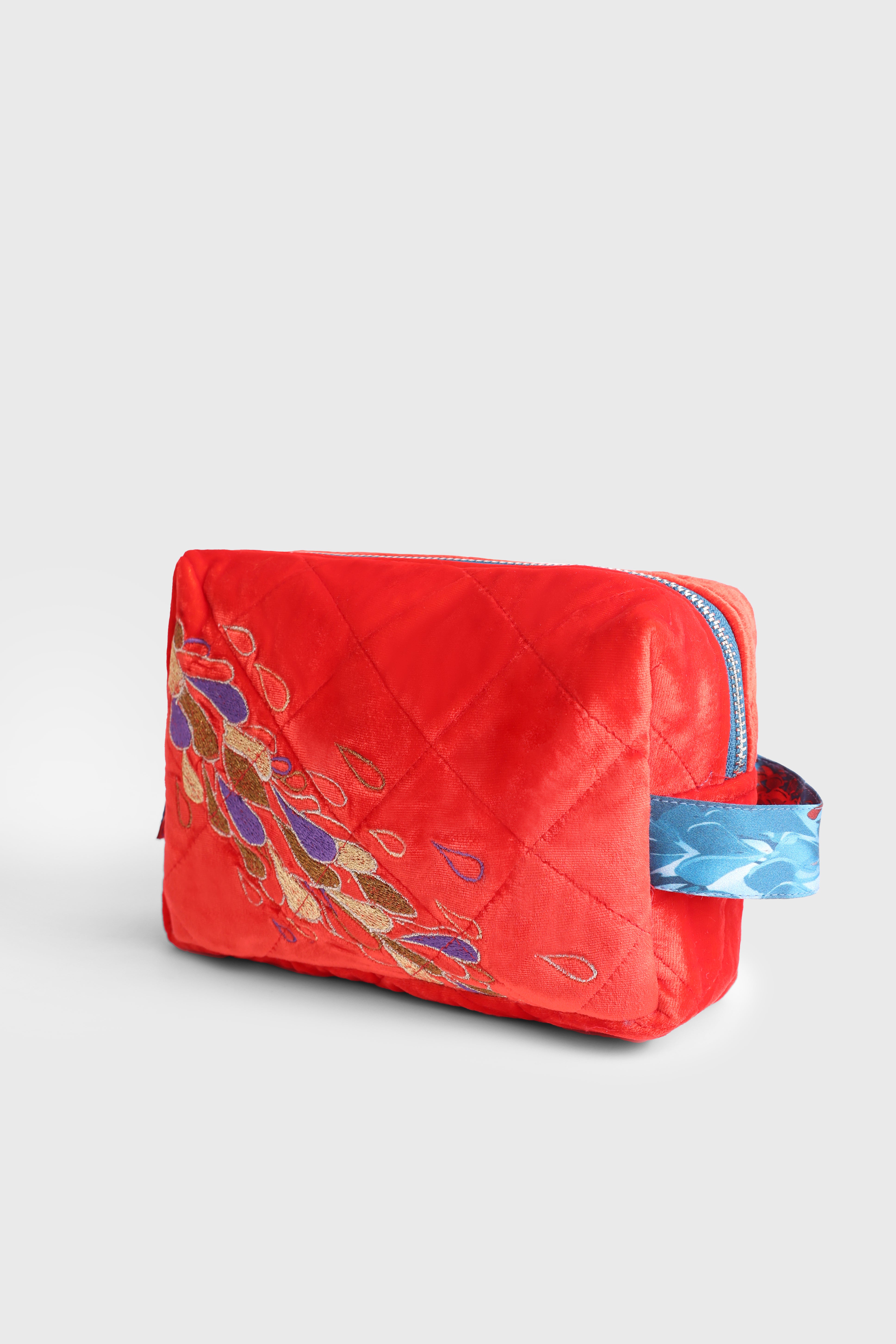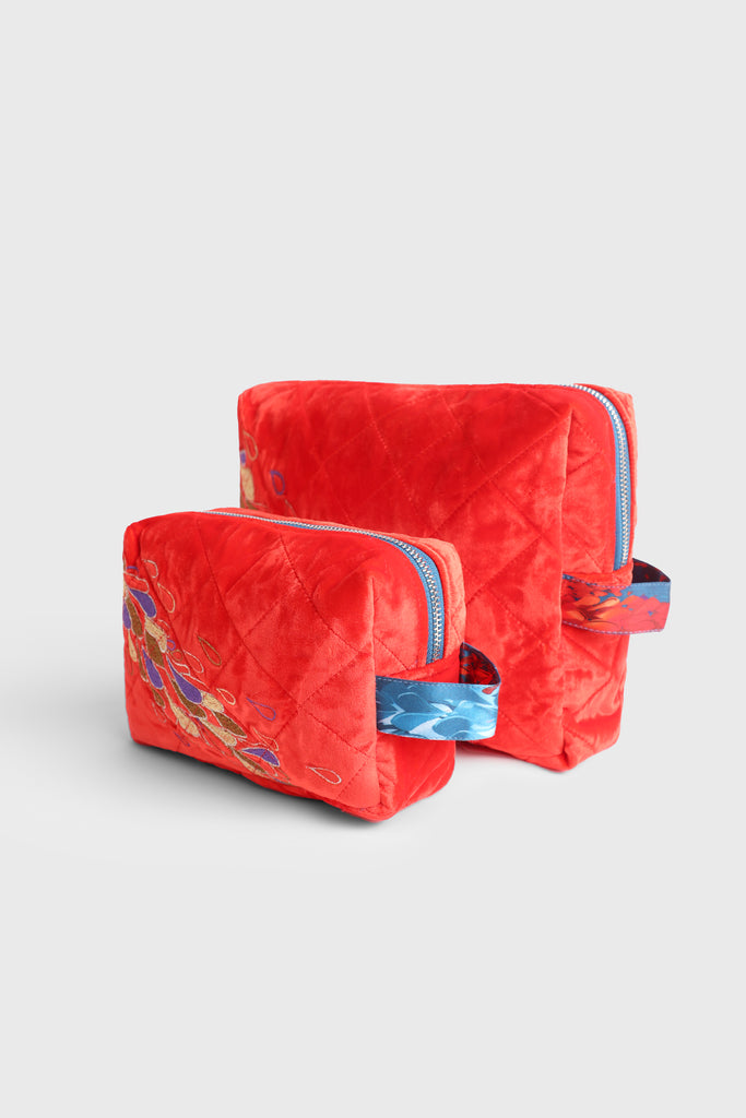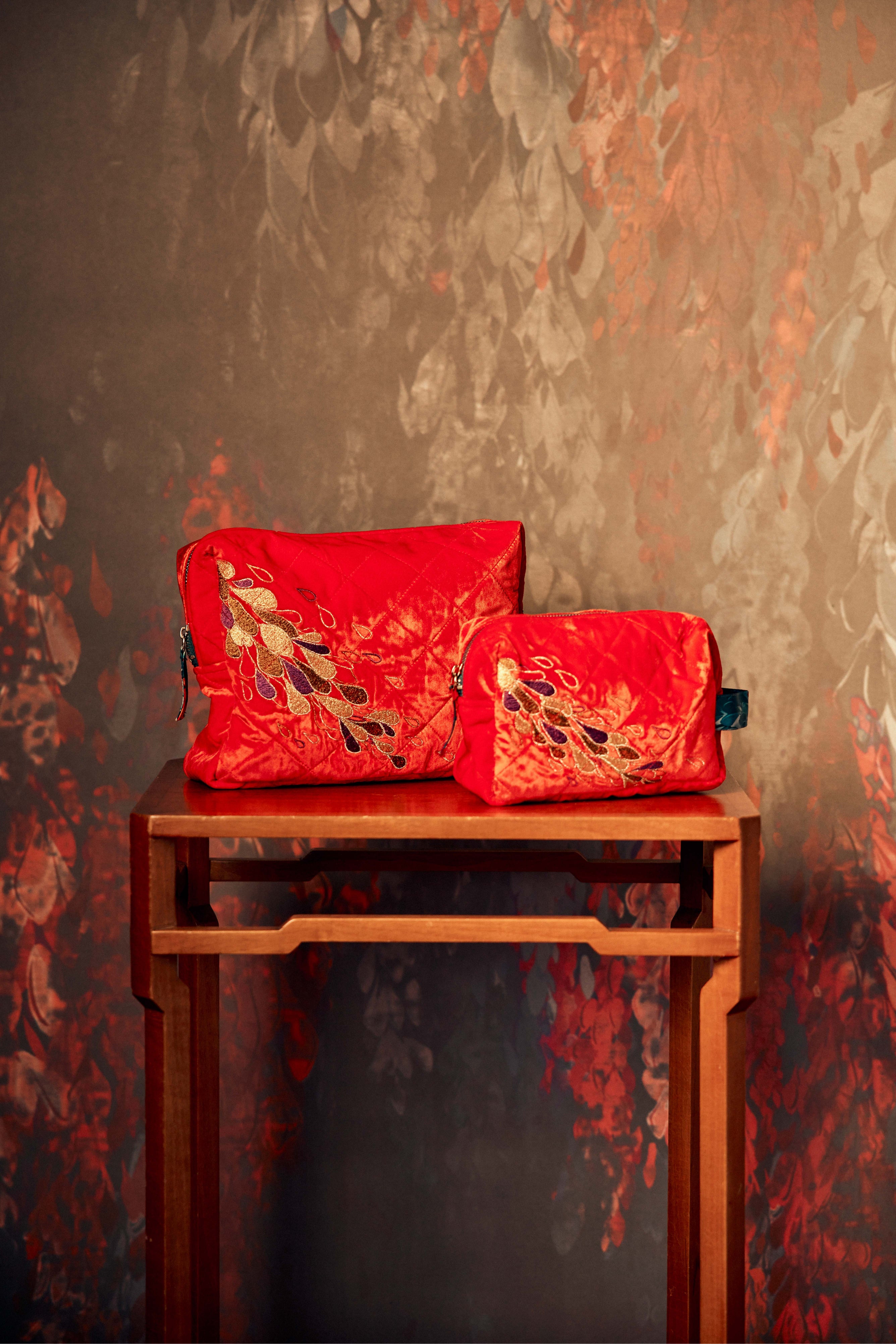 A petite indulgence for your everyday, the small pouch is exquisitely crafted from soft velvet with gorgeous craftsmanship embroidery, and a contrasting interior pattern for a subtle element of surprise. Lightly padded to hold its shape, its beautiful motif adds effortless elegance to your accessories collection. Perfect for make-up, minis, toiletries, or those treasured little bits and bobs you like to keep close.