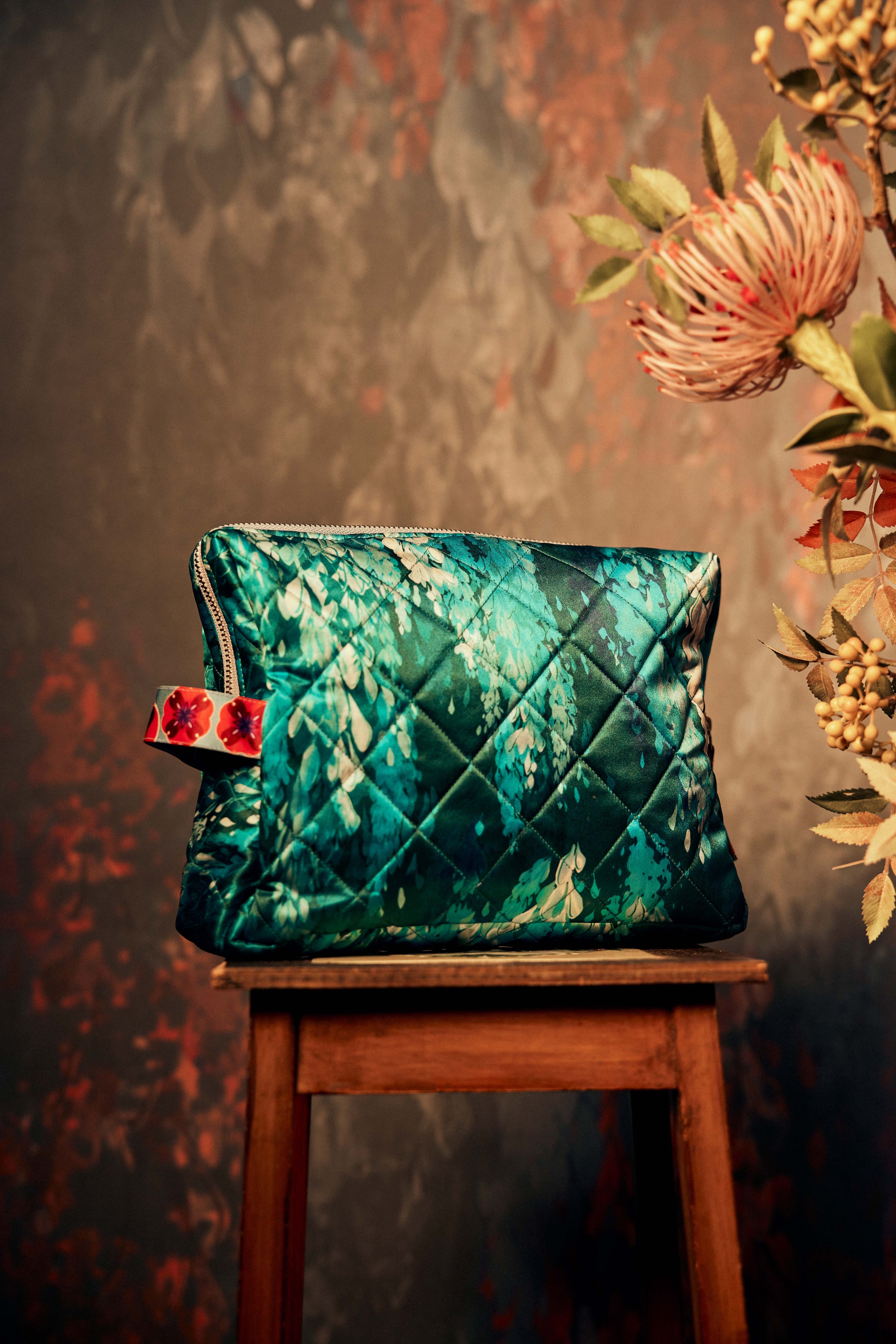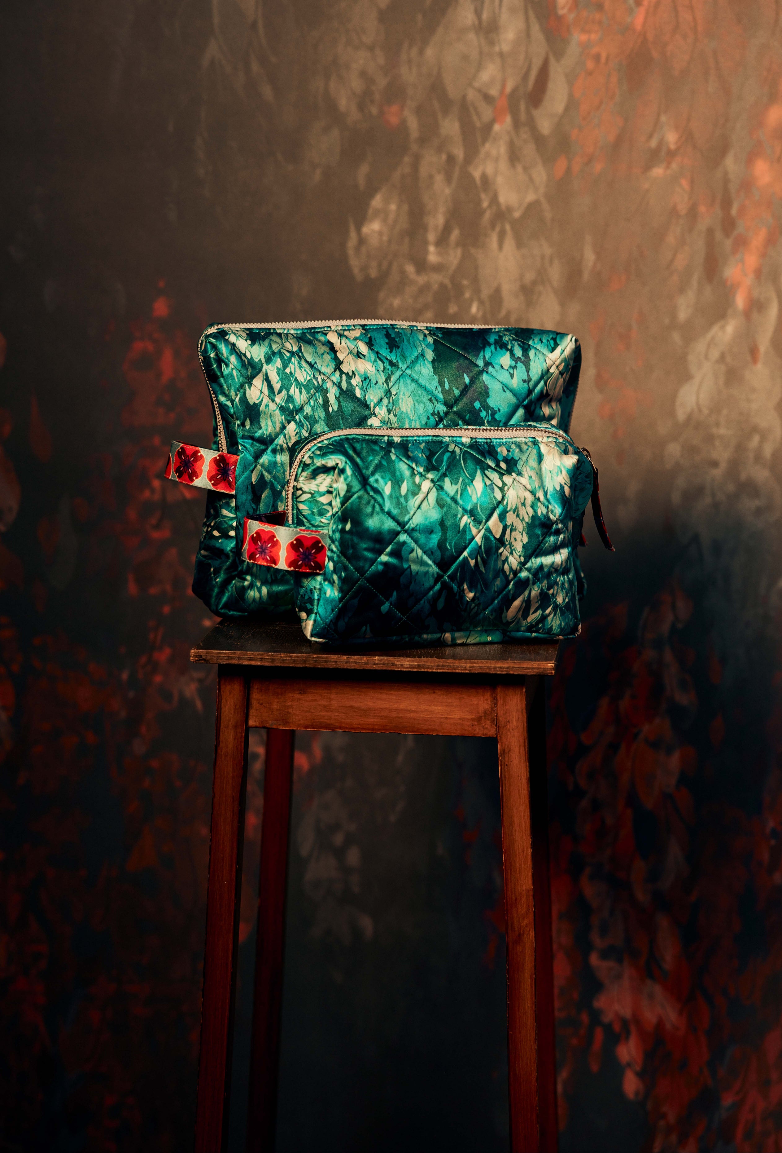 Spacious yet refined, the big pouch is crafted from soft 100% luxurious silk, with a contrasting interior pattern for a discreet touch of charm. Lightly padded to protect and hold its shape, it combines beauty with practicality. Ideal for travel or home, it keeps your make-up, toiletries, or daily essentials elegantly organised, adding a whisper of luxury to every occasion.