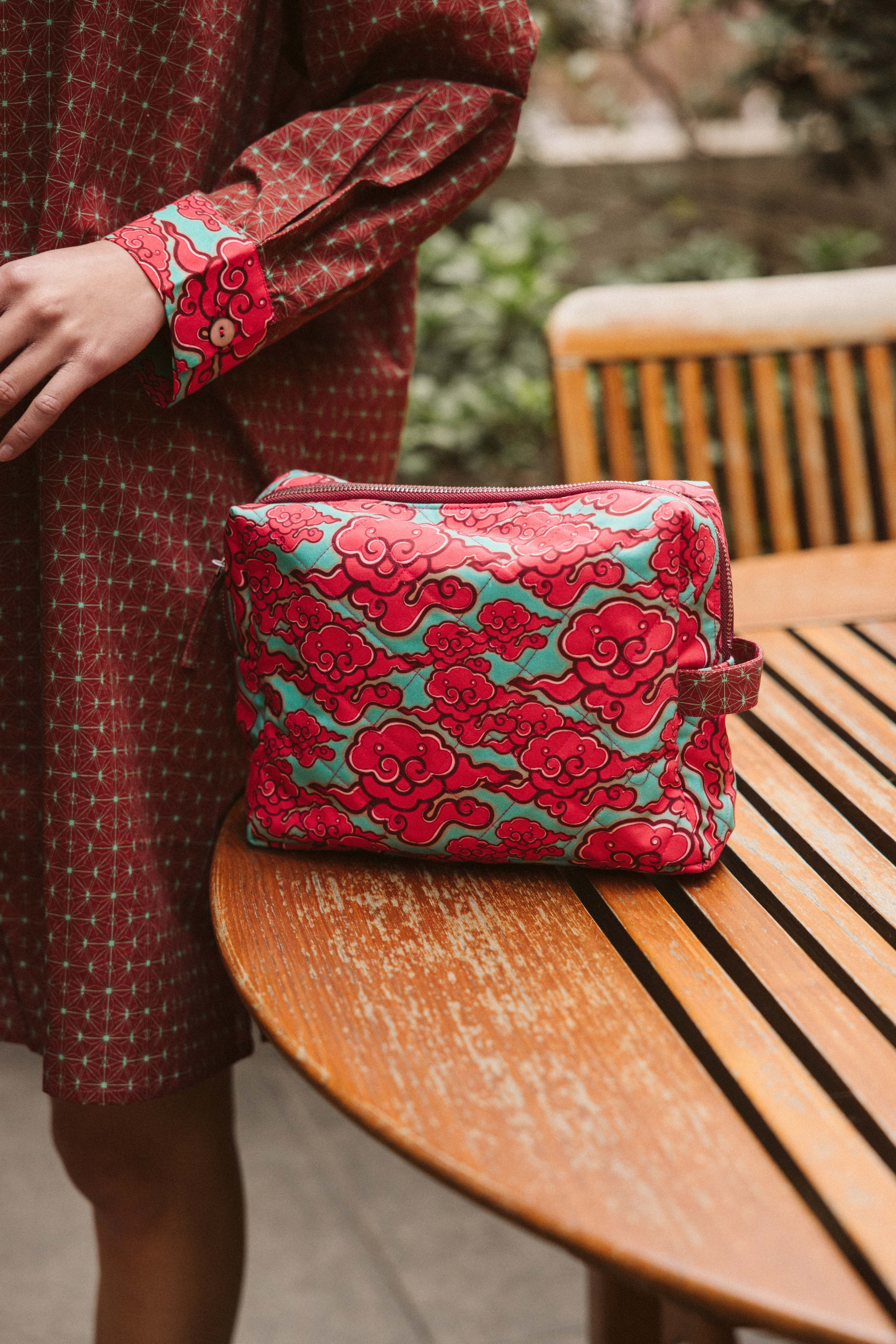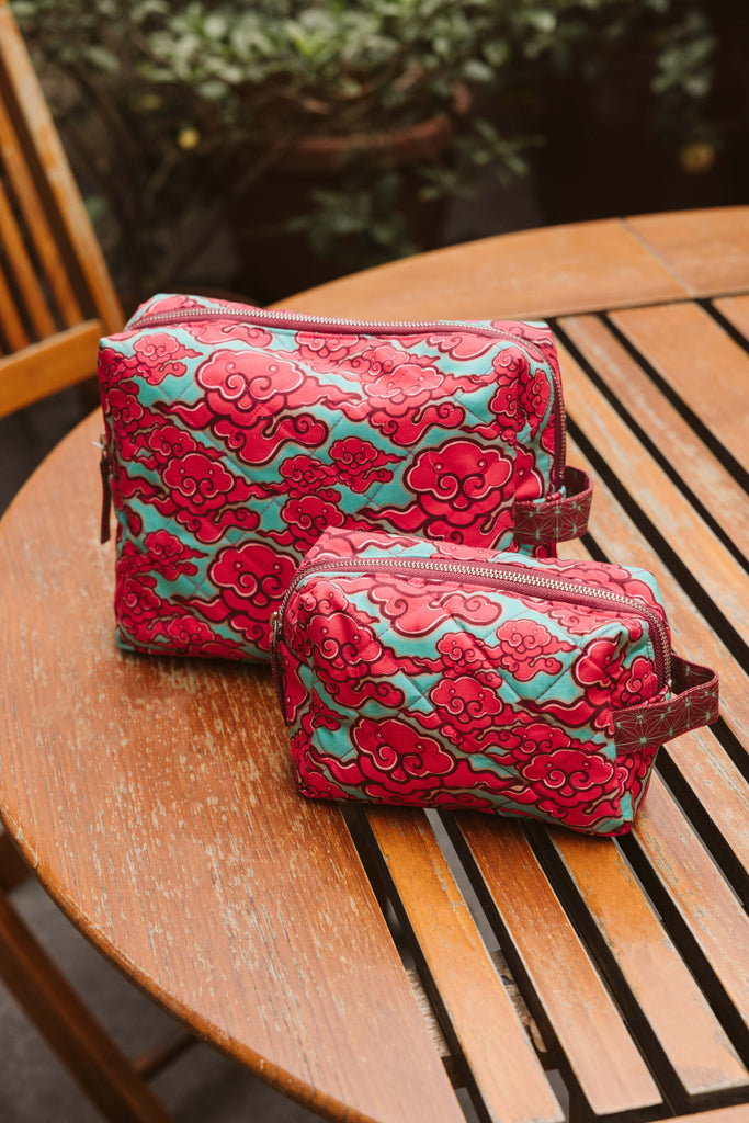 Spacious yet refined, the big pouch is crafted from soft 100% cotton, with a contrasting interior pattern for a discreet touch of charm. Lightly padded to protect and hold its shape, it combines beauty with practicality. Ideal for travel or home, it keeps your make-up, toiletries, or daily essentials elegantly organised, adding a whisper of luxury to every occasion.