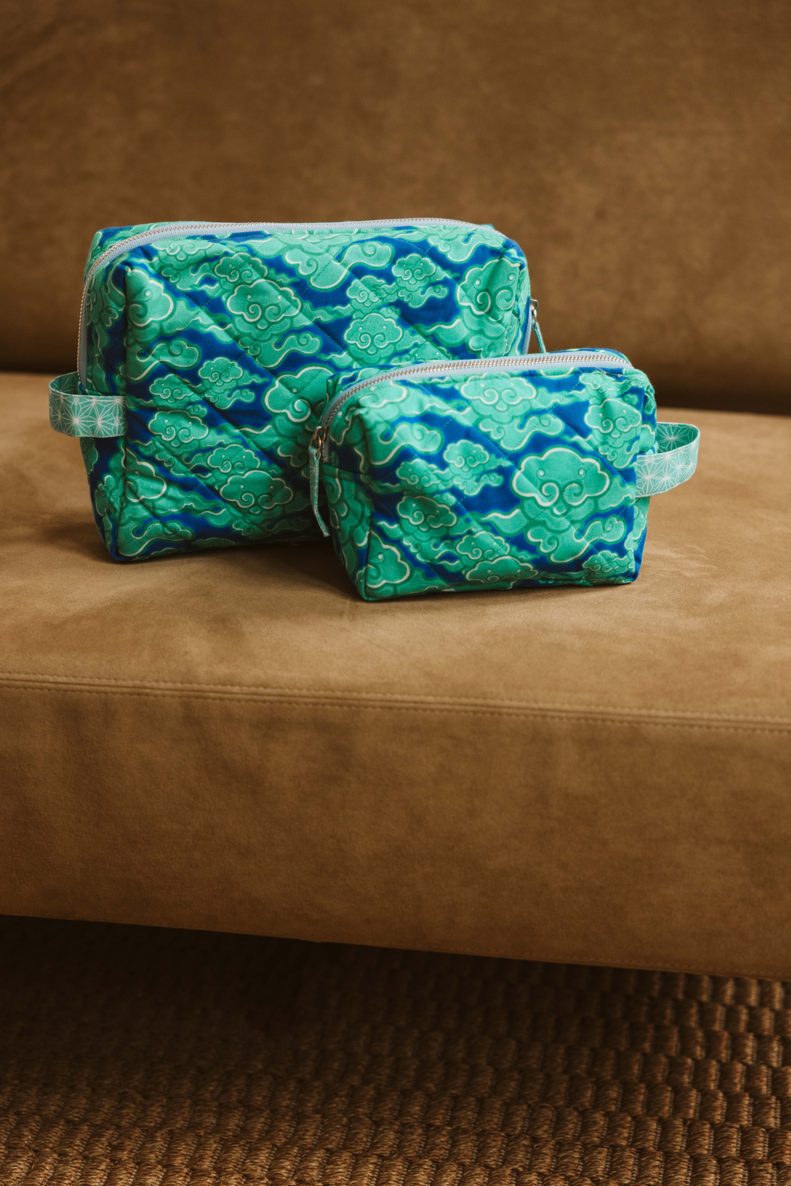 Spacious yet refined, the big pouch is crafted from soft 100% cotton, with a contrasting interior pattern for a discreet touch of charm. Lightly padded to protect and hold its shape, it combines beauty with practicality. Ideal for travel or home, it keeps your make-up, toiletries, or daily essentials elegantly organised, adding a whisper of luxury to every occasion.